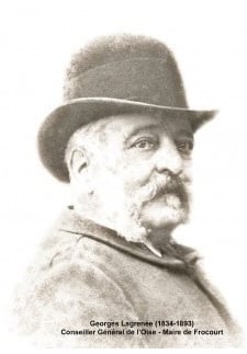 En 1865 Georges LAGRENEE se marie avec Marie-Léonie RIDEL. Propriétaire du château de Frocourt, Il devient rapidement le maire du village. De nombreux travaux sont lancés : Ecole (qui porte désormais son nom), restauration et entretien de l’église, équipement et financement d’un corps de sapeurs-pompiers. Grâce à leur richesse, ils électrifient le château en exploitant le ru de Berneuil grâce à un moulin à eau. Ils financent une des cloches de l’église dont Marie-Léonie devient la marraine et qui porte toujours son prénom. |